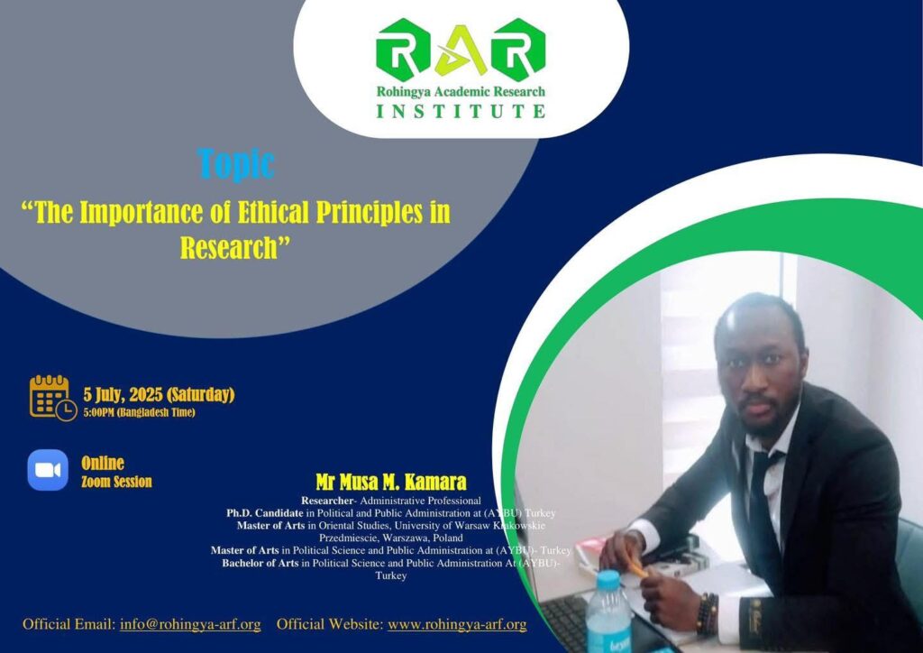 RAR Institute is honored to invite Mr. Musa M. Kamara to deliver a lecture on “Importance of Ethical Principles in Research.” Mr. Musa M. Kamara is an accomplished researcher and administrative professional with a strong academic and interdisciplinary background. Mr. Kamara is currently pursuing a Doctor of Philosophy (Ph.D.) in Political Science and Public Administration […]