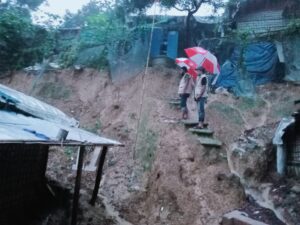 The continuous downpour has profoundly intensified vulnerabilities within the refugee camps since 29 May . Rohingya refugees built these shelters with bamboo and tarpaulin that partially got from NGOs and the rest they managed them. These shelters are situated on unstable structure, proved ill-equipped andlandslide-prone slopes to withstand the rainfall. Because of poor drainage, steep terrain, and lack of resilient infrastructure exacerbated the natural disaster. In Camp 7 alone, hundreds of families were directly affected. Similar conditions were reported from Camps 13, 16, 24, and 26.